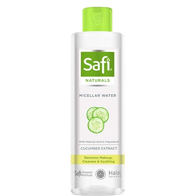 Safi naturals micellar water adalah pembersih wajah berbahan dasar air dengan kandungan ekstrak mentimun yang berfungsi untuk:
