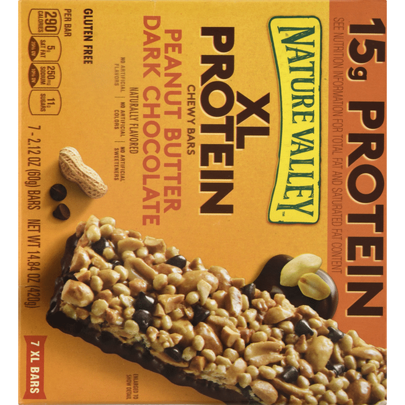 Rich dark chocolate chips, crunchy roasted peanuts, and creamy peanut butter. Chewy protein bar with peanuts and chocolate dipped in a chocolate flavoured coating. Nature valley oats & dark chocolate crunchy granola is just like the popular oats & dark chocolate crunchy bar, but in granola form. Nature valley granola bars are made with whole grain oats, roasted peanuts, semisweet chocolate chips and creamy peanut butter.