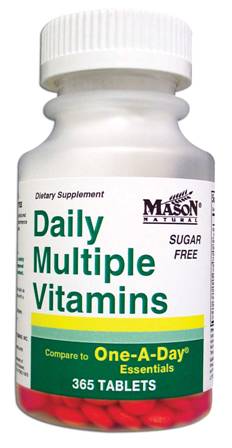View Mason Natural Daily Multiple Vitamins US. This item mason natural, daily multiple vitamins compare to one a day essentials®. Vitamin a, vitamin c, vitamin d, vitamin e, thiamin, vitamin b2, niacinamide, vitamin b6, folic acid, vitamin b12, pantothenic acid see more.
