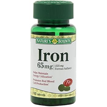 View Nature's Bounty Iron 65 Mg.(325 Mg Ferrous Sulfate) 100 Tablets US. Carefully manufactured by nature's bounty, inc.bohemia ny 11716 u.s.a © 2015 nature's bounty, inc. Fd&c blue 1 lake, fd&c yellow 6 lake, silica, titanium dioxide color, vegetable magnesium stearate.