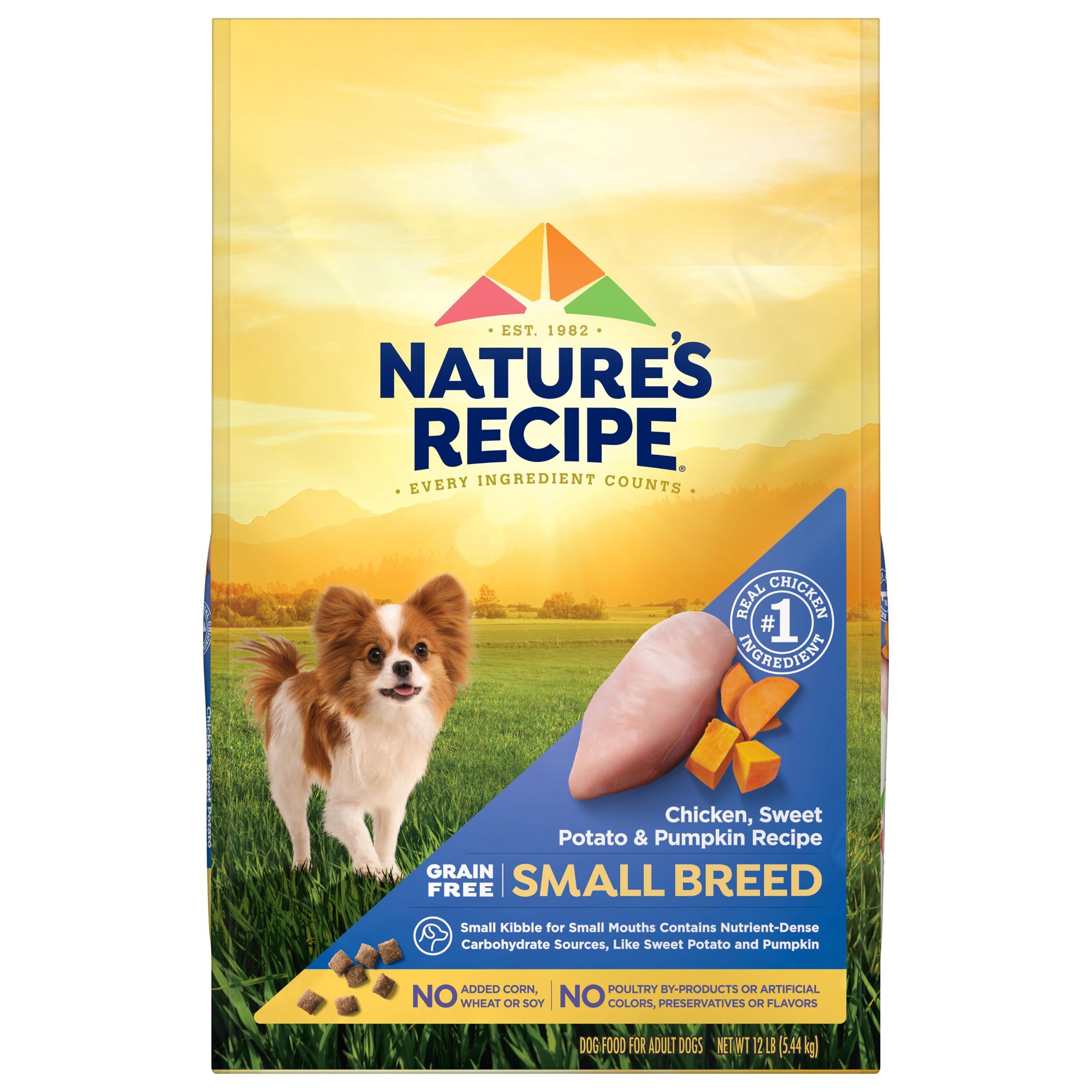 View Nature's Recipe Grain Free Small Breed Dry Dog Food Chicken Sweet Potato & Pumpkin US. Nature's recipe grain free easy to digest dry dog food with real meat, sweet potato & pumpkin. Highly bioavailable nutrient sources, such as copper.