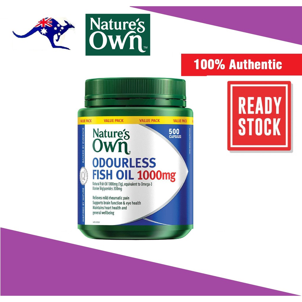 View Nature's Way Odourless Fish Oil 1000Mg US. Nature's own odourless fish oil 1000mg is a natural source of omega 3 essential fatty acids, with an odourless formula to reduce fishy aftertaste and reflux. If symptoms persist, talk to your health professional.