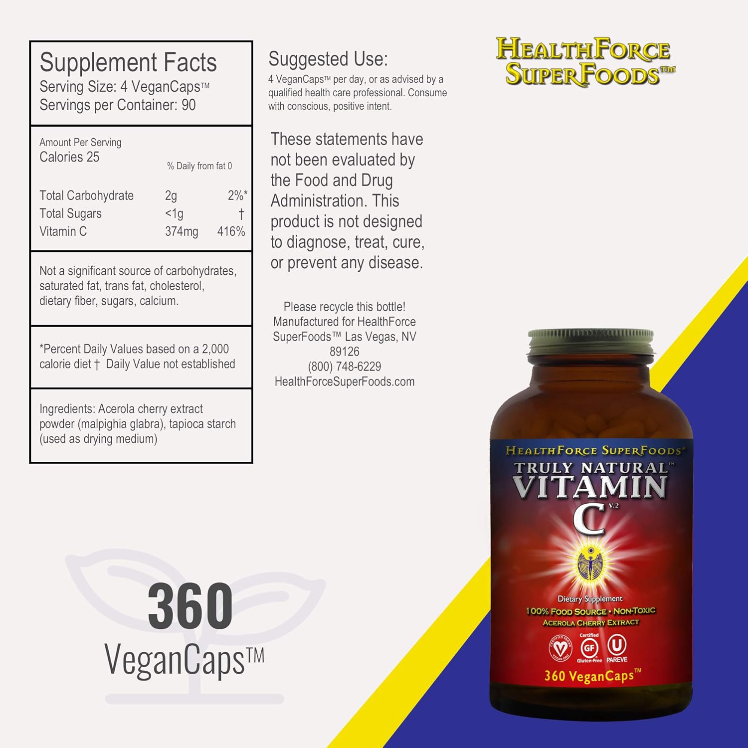 Vitamin c (as ascorbic acid), rose hips, calcium carbonate, cellulose, cellulose, stearic acid, croscarmellose sodium, silicon dioxide, magnesium stearate. Since i have taken this vitamin c daily i have not had a single sickness. However, truly natural vitamin c has all of the naturally occurring elements synergistically present and bonded (including naturally occurring bioflavonoids) because it is 100% food (100% acerola cherry powder). Truly natural vitamin c by healthforce nutritionals 500 g powder truly natural vitamin c 500g don t flush your health money right down the drain vitamin c is an essential nutrient but when it is in an isolated and or synthetic form it is quite poorly absorbed and can actually adversely affect our health.